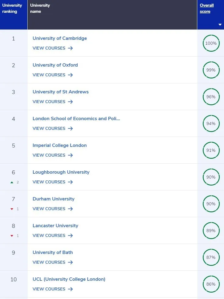 近日,Complete University Guide 完全大学指南公布了2021年英国大学排名。完全大学指南,全称Complete University Guide (CUG)。是英国最知名的大学排名刊物之一,也是十分综合的面对英国本科生的排名。英国大学排名由著名的英国报社《独立报》参与制订,首次发表于2007年。CUG排名的所有数据来源于英国高等教育统计署,和Times英国大学排名、《卫报》英国大学排名被视为英国本土三大排名。